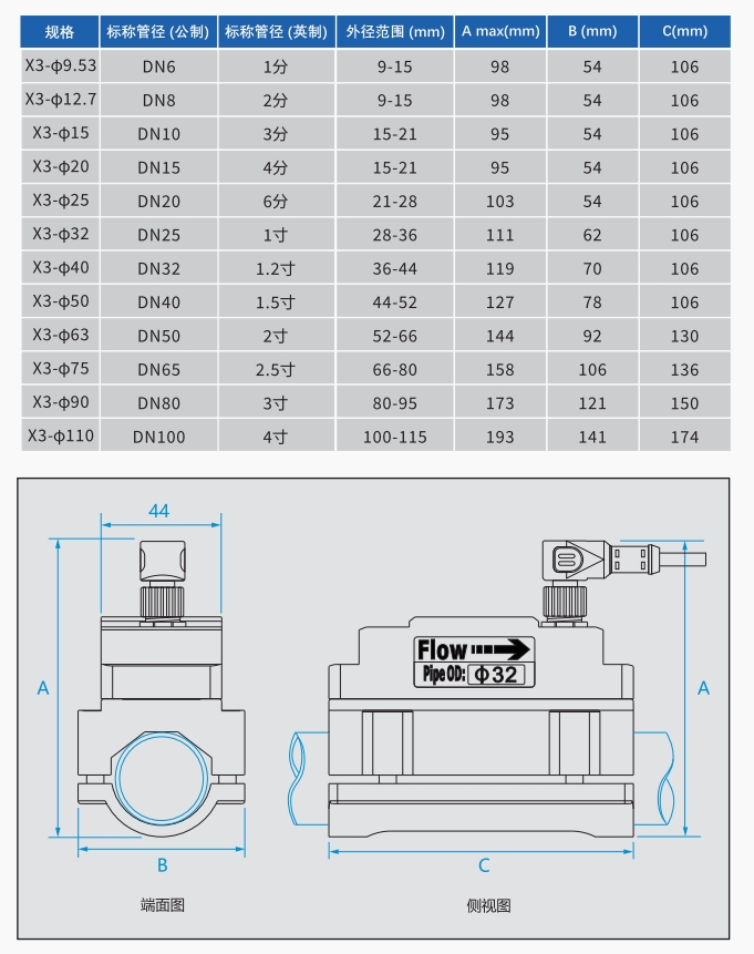 X3是一款專為測量小管徑設計的夾鉗式超聲波流量計,解決了外夾式流量計在小管徑上不適合安裝和測量不穩定的問題。